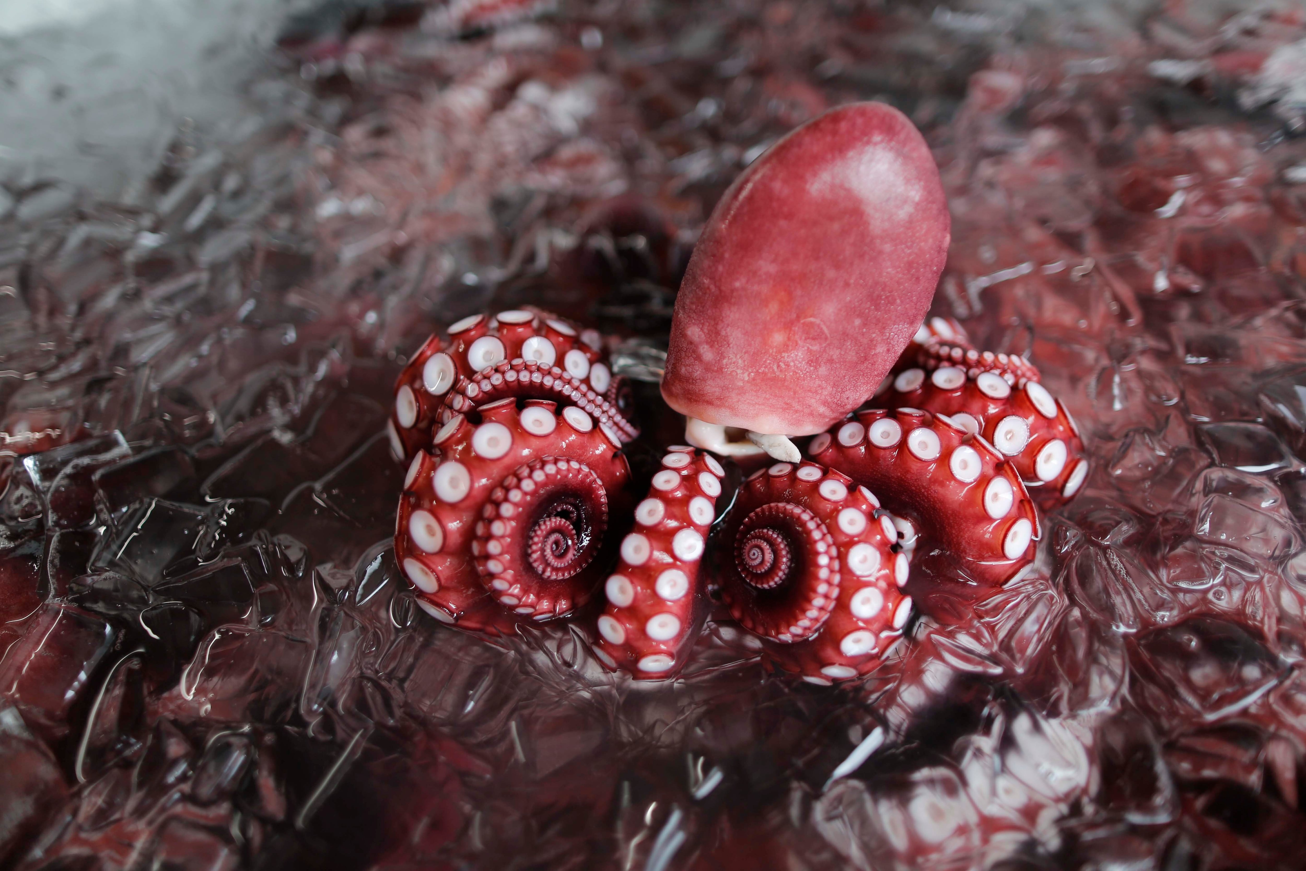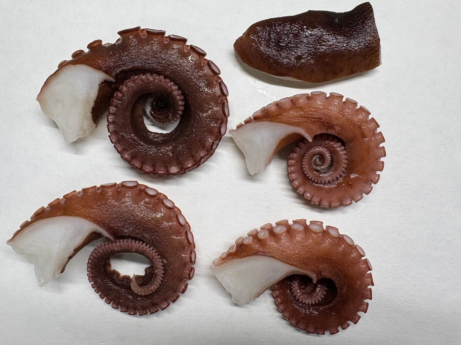 福岡県産の真蛸は、アワビやサザエなどの貝類を多く食べている漁場と、エビやカニを食べている漁場を持っております。個体ごとに味わいが変わります。まさにタコの生涯をお楽しみいただけます!!